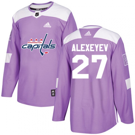 >Men's Adidas Washington Capitals #27 Alexander Alexeyev Authentic Purple Fights Cancer Practice NHL Jersey