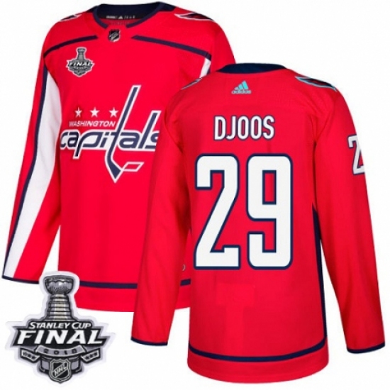 Men's Adidas Washington Capitals #29 Christian Djoos Authentic Red Home 2018 Stanley Cup Final NHL Jersey