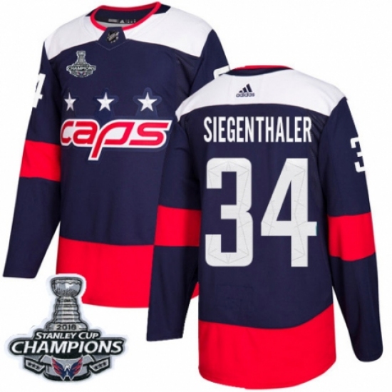 >Men's Adidas Washington Capitals #34 Jonas Siegenthaler Authentic Navy Blue 2018 Stadium Series 2018 Stanley Cup Final Champions NHL Jersey