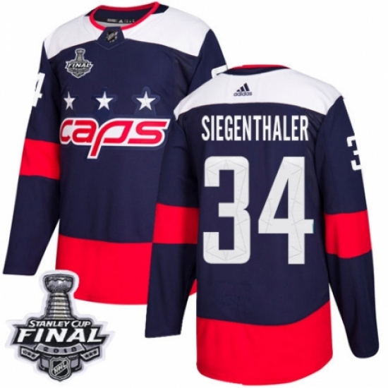 >Men's Adidas Washington Capitals #34 Jonas Siegenthaler Authentic Navy Blue 2018 Stadium Series 2018 Stanley Cup Final NHL Jersey