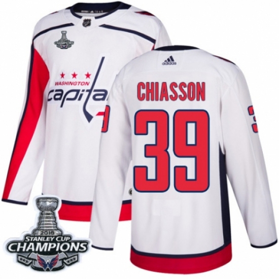 Men's Adidas Washington Capitals #39 Alex Chiasson Authentic White Away 2018 Stanley Cup Final Champions NHL Jersey
