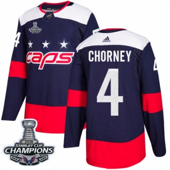 Men's Adidas Washington Capitals #4 Taylor Chorney Authentic Navy Blue 2018 Stadium Series 2018 Stanley Cup Final Champions NHL Jersey