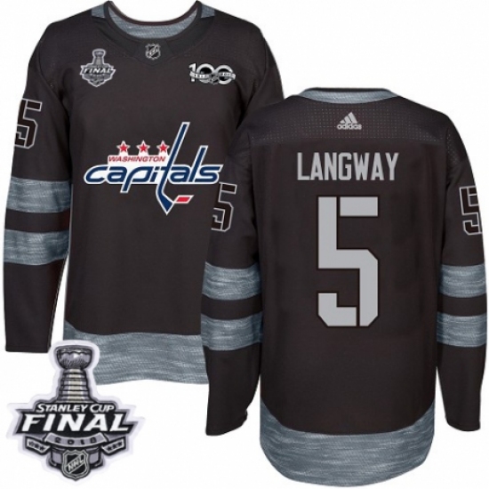 Men's Adidas Washington Capitals #5 Rod Langway Authentic Black 1917-2017 100th Anniversary 2018 Stanley Cup Final NHL Jersey