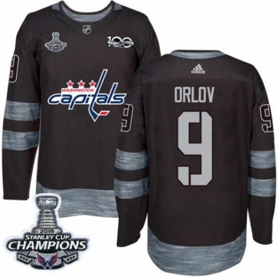 >Men's Adidas Washington Capitals #9 Dmitry Orlov Authentic Black 1917-2017 100th Anniversary 2018 Stanley Cup Final Champions NHL Jersey