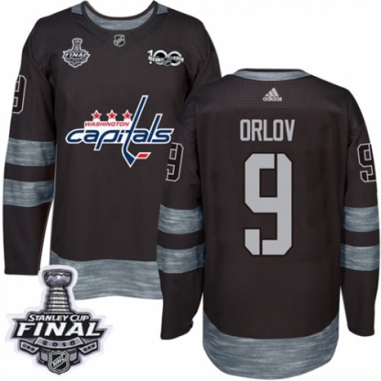 >Men's Adidas Washington Capitals #9 Dmitry Orlov Authentic Black 1917-2017 100th Anniversary 2018 Stanley Cup Final NHL Jersey