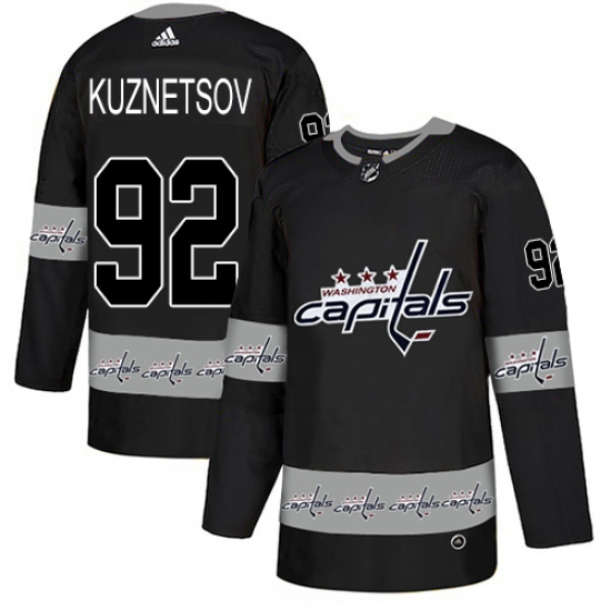 Men's Adidas Washington Capitals #92 Evgeny Kuznetsov Authentic Black Team Logo Fashion NHL Jersey