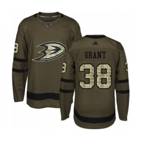 >Men's Anaheim Ducks #38 Derek Grant Authentic Green Salute to Service Hockey Jersey