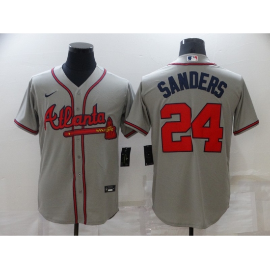 Men's Atlanta Braves #24 Deion Sanders Gray Nike MLB Jersey