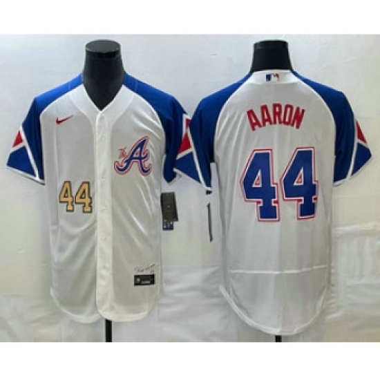 >Men's Atlanta Braves #44 Hank Aaron Number White 2023 City Connect Flex Base Stitched Jersey1