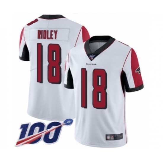 Men's Atlanta Falcons #18 Calvin Ridley White Vapor Untouchable Limited Player 100th Season Football Jersey