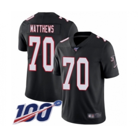 Men's Atlanta Falcons #70 Jake Matthews Black Alternate Vapor Untouchable Limited Player 100th Season Football Jersey