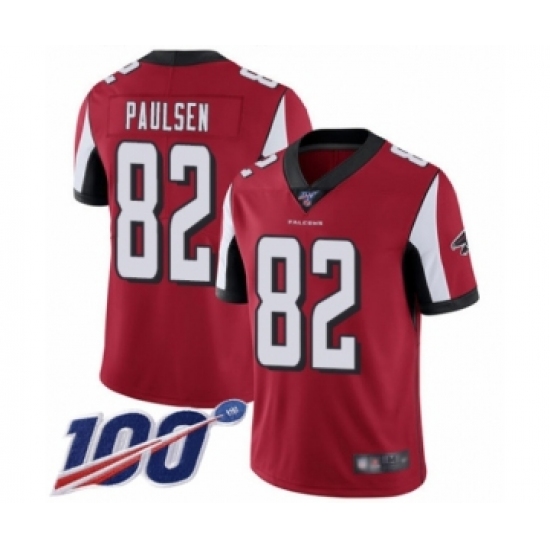>Men's Atlanta Falcons #82 Logan Paulsen Red Team Color Vapor Untouchable Limited Player 100th Season Football Jersey