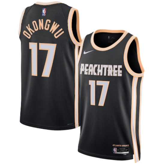 >Men's Atlanta Hawks #17 Onyeka Okongwu Black 2025-26 City Edition Swingman Stitched Jersey