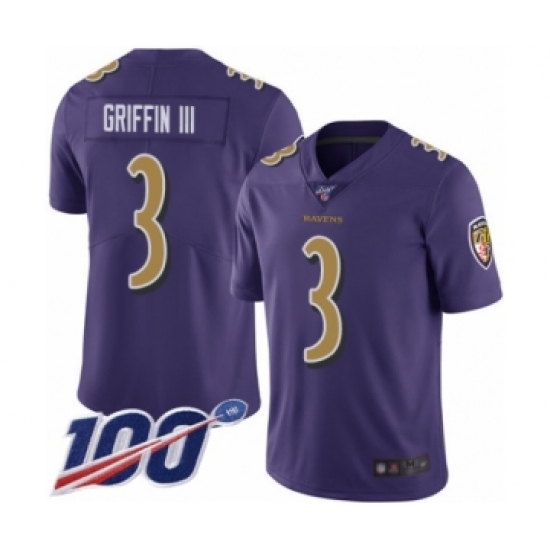Men's Baltimore Ravens #3 Robert Griffin III Limited Purple Rush Vapor Untouchable 100th Season Football Jersey