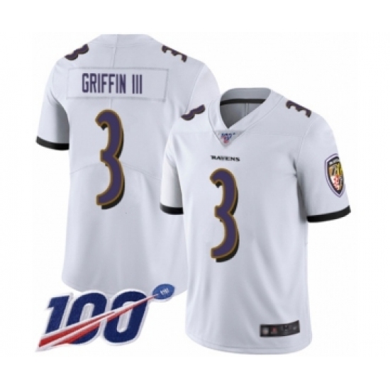 Men's Baltimore Ravens #3 Robert Griffin III White Vapor Untouchable Limited Player 100th Season Football Jersey