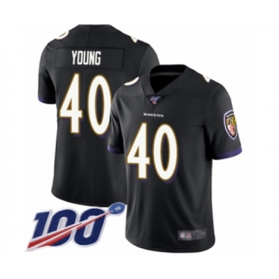 Men's Baltimore Ravens #40 Kenny Young Black Alternate Vapor Untouchable Limited Player 100th Season Football Jersey