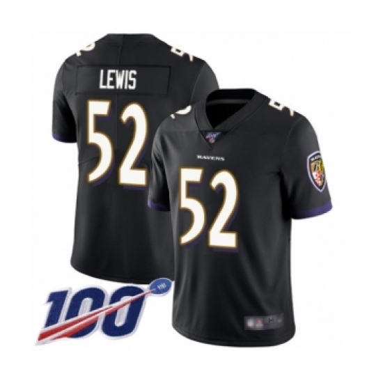 Men's Baltimore Ravens #52 Ray Lewis Black Alternate Vapor Untouchable Limited Player 100th Season Football Jersey
