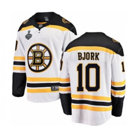 Men's Boston Bruins #10 Anders Bjork Authentic White Away Fanatics Branded Breakaway 2019 Stanley Cup Final Bound Hockey Jersey