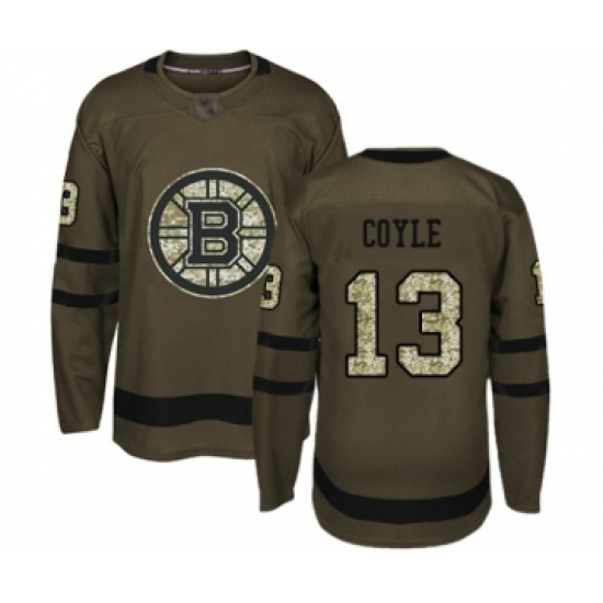 >Men's Boston Bruins #13 Charlie Coyle Authentic Green Salute to Service Hockey Jersey