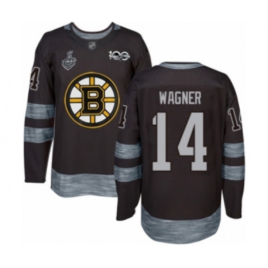 >Men's Boston Bruins #14 Chris Wagner Authentic Black 1917-2017 100th Anniversary 2019 Stanley Cup Final Bound Hockey Jersey
