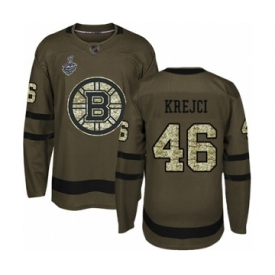Men's Boston Bruins #46 David Krejci Authentic Green Salute to Service 2019 Stanley Cup Final Bound Hockey Jersey