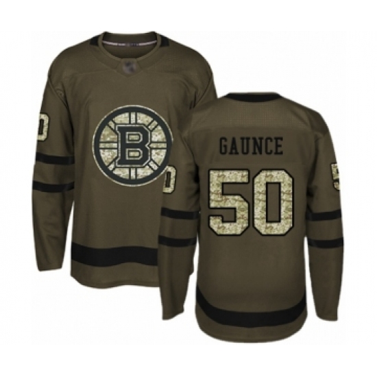 >Men's Boston Bruins #50 Brendan Gaunce Authentic Green Salute to Service Hockey Jersey