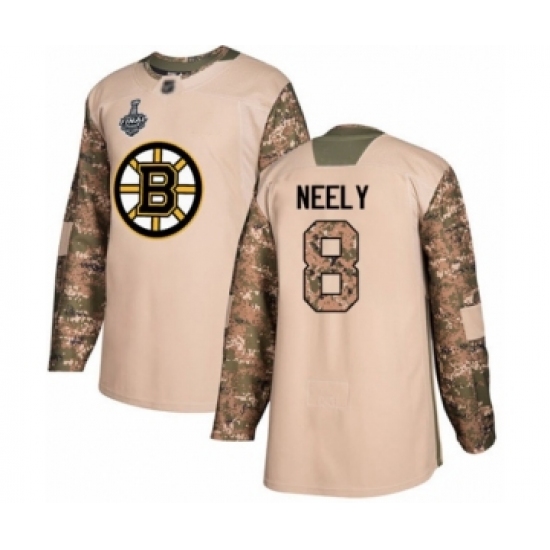 >Men's Boston Bruins #8 Cam Neely Authentic Camo Veterans Day Practice 2019 Stanley Cup Final Bound Hockey Jersey