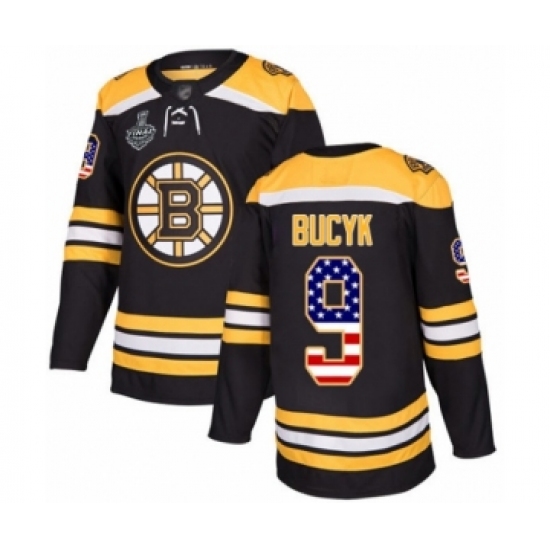 Men's Boston Bruins #9 Johnny Bucyk Authentic Black USA Flag Fashion 2019 Stanley Cup Final Bound Hockey Jersey