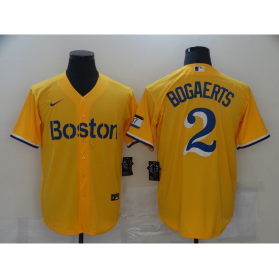>Men's Boston Red Sox #2 Xander Bogaerts Nike Gold-Light Blue 2021 Jersey