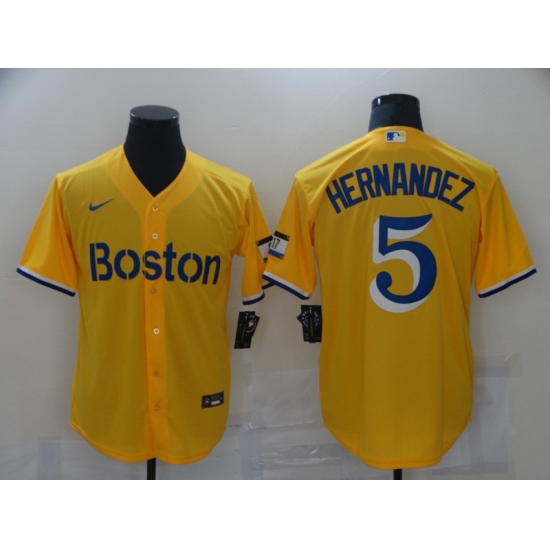 >Men's Boston Red Sox #5 Enrique Hernandez Nike Gold-Light Blue 2021 City Connect Jersey