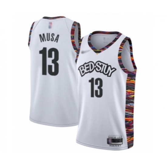 >Men's Brooklyn Nets #13 Dzanan Musa Swingman White Basketball Jersey - 2019 20 City Edition