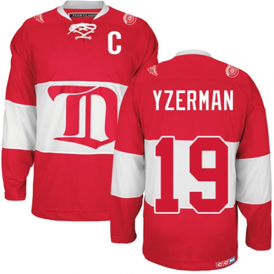 Men's CCM Detroit Red Wings #19 Steve Yzerman Premier Red Winter Classic Throwback NHL Jersey