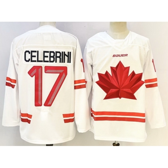 Men's Canada Hockey #17 Macklin Celebrini White Stitched Jersey