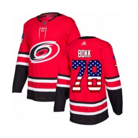 Men's Carolina Hurricanes #78 Dominik Bokk Authentic Red USA Flag Fashion Hockey Jersey
