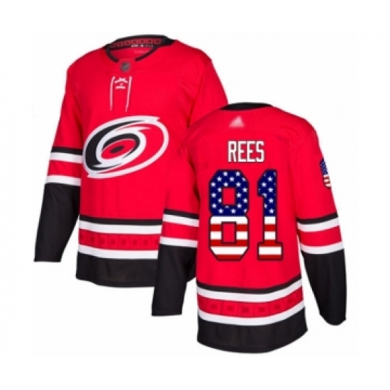Men's Carolina Hurricanes #81 Jamieson Rees Authentic Red USA Flag Fashion Hockey Jersey