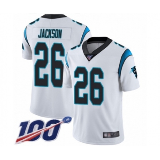>Men's Carolina Panthers #26 Donte Jackson White Vapor Untouchable Limited Player 100th Season Football Jersey
