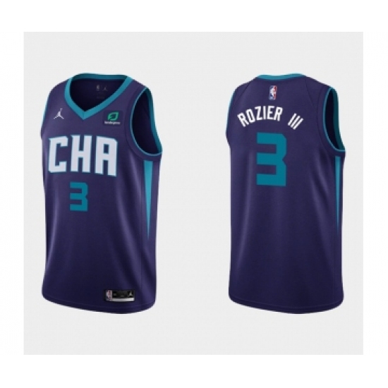 Men's Jordan Charlotte Hornets #3 Terry Rozier Authentic Purple Basketball Jersey Statement Edition