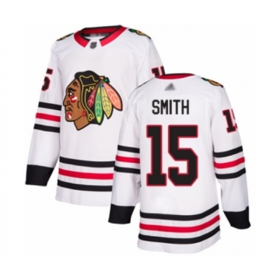 Men's Chicago Blackhawks #15 Zack Smith Authentic White Away Hockey Jersey
