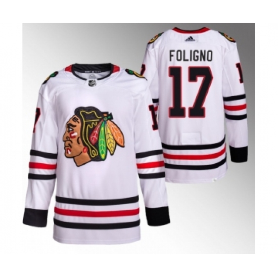 Men's Chicago Blackhawks #17 Nick Foligno White Stitched Hockey Jersey