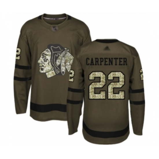 >Men's Chicago Blackhawks #22 Ryan Carpenter Authentic Green Salute to Service Hockey Jersey