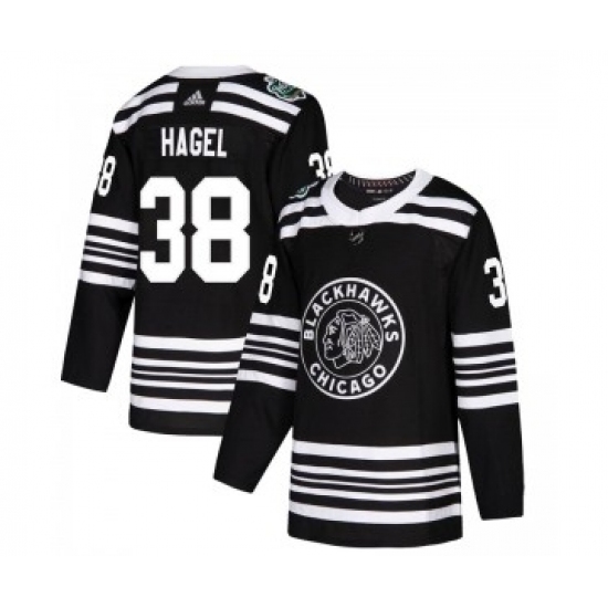 Men's Chicago Blackhawks #38 Brandon Hagel Adidas Authentic 2019 Winter Classic Black Jersey