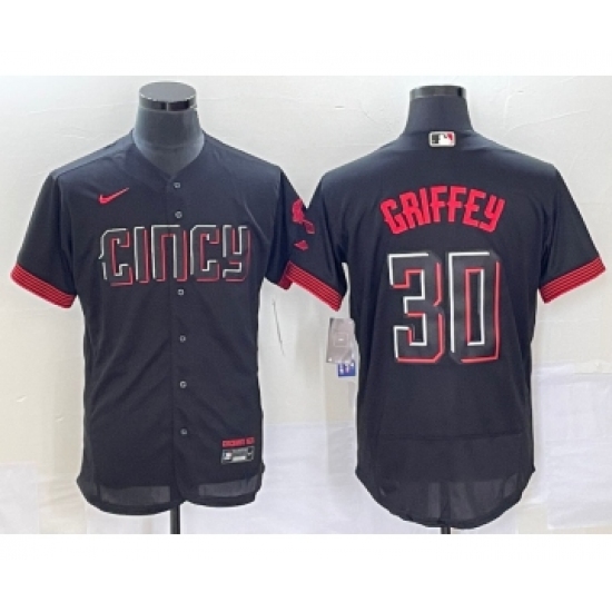 Men's Cincinnati Reds #30 Ken Griffey Jr Black 2023 City Connect Flex Base Stitched Jersey