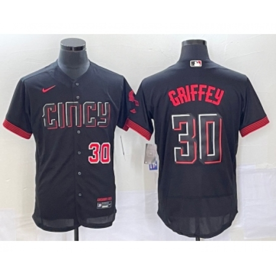 Men's Cincinnati Reds #30 Ken Griffey Jr Black 2023 City Connect Flex Base Stitched Jersey
