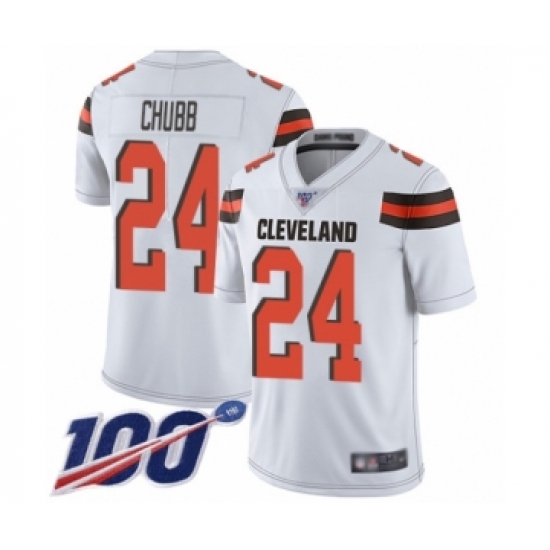 >Men's Cleveland Browns #24 Nick Chubb White Vapor Untouchable Limited Player 100th Season Football Jersey