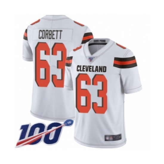 Men's Cleveland Browns #63 Austin Corbett White Vapor Untouchable Limited Player 100th Season Football Jersey