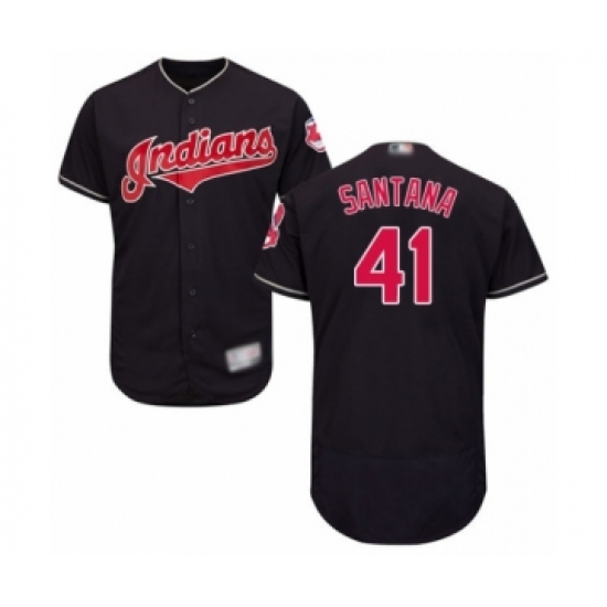 Men's Cleveland Indians #41 Carlos Santana Navy Blue Alternate Flex Base Authentic Collection Baseball Jersey