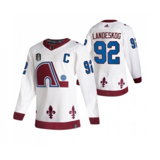 >Men's Colorado Avalanche #92 Gabriel Landeskog White 2022 Stanley Cup Final Patch Reverse Retro Stitched Jersey