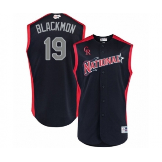 >Men's Colorado Rockies #19 Charlie Blackmon Authentic Navy Blue National League 2019 Baseball All-Star Jersey