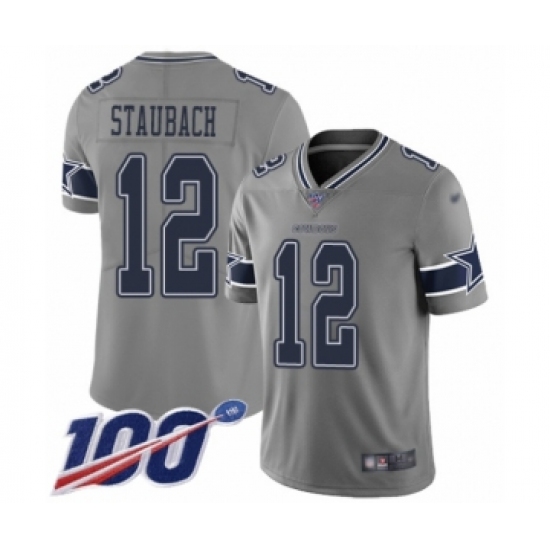 >Men's Dallas Cowboys #12 Roger Staubach Limited Gray Inverted Legend 100th Season Football Jersey