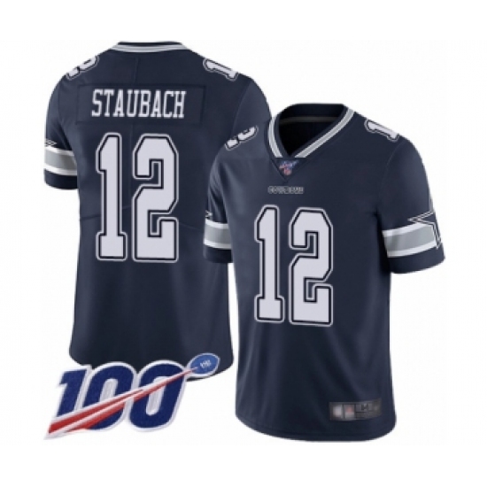 >Men's Dallas Cowboys #12 Roger Staubach Navy Blue Team Color Vapor Untouchable Limited Player 100th Season Football Jersey